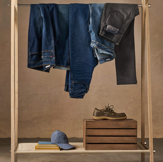 In the fall of 2024, I reconnected with John, the SVP of the brand, at a mutual friend's house party. Coincidentally, the host was one of their most-used e-commerce models, and I had previously worked with him at other companies. NYC may have over 8 million people, but it's somehow never a surprise when worlds collide on a daily basis. Anyway, John mentioned needing an interior photographer to capture their latest Macy's flagship store. Having previously photographed interiors for hospitality and real-estate clients, I pitched myself and dove into the project details. A few more cocktails and an impromptu DJ set later, my assistant and I were rolling our equipment into Macy's freight elevator early in the morning. Over three hours we captured and sculpted lighting around their extensive floor plan, and delivered a beautiful set of images less than two weeks later. This project further solidified my relationship with Weatherproof Vintage, but I would have never imagined it partially leading me to capture their spring and fall campaigns. We began by shooting the layflats and macro clothing details at a local studio shoot, using Oliphant backdrops hand-selected by the client and lighting to match the proposed treatment for the on-figure images being shot on location.